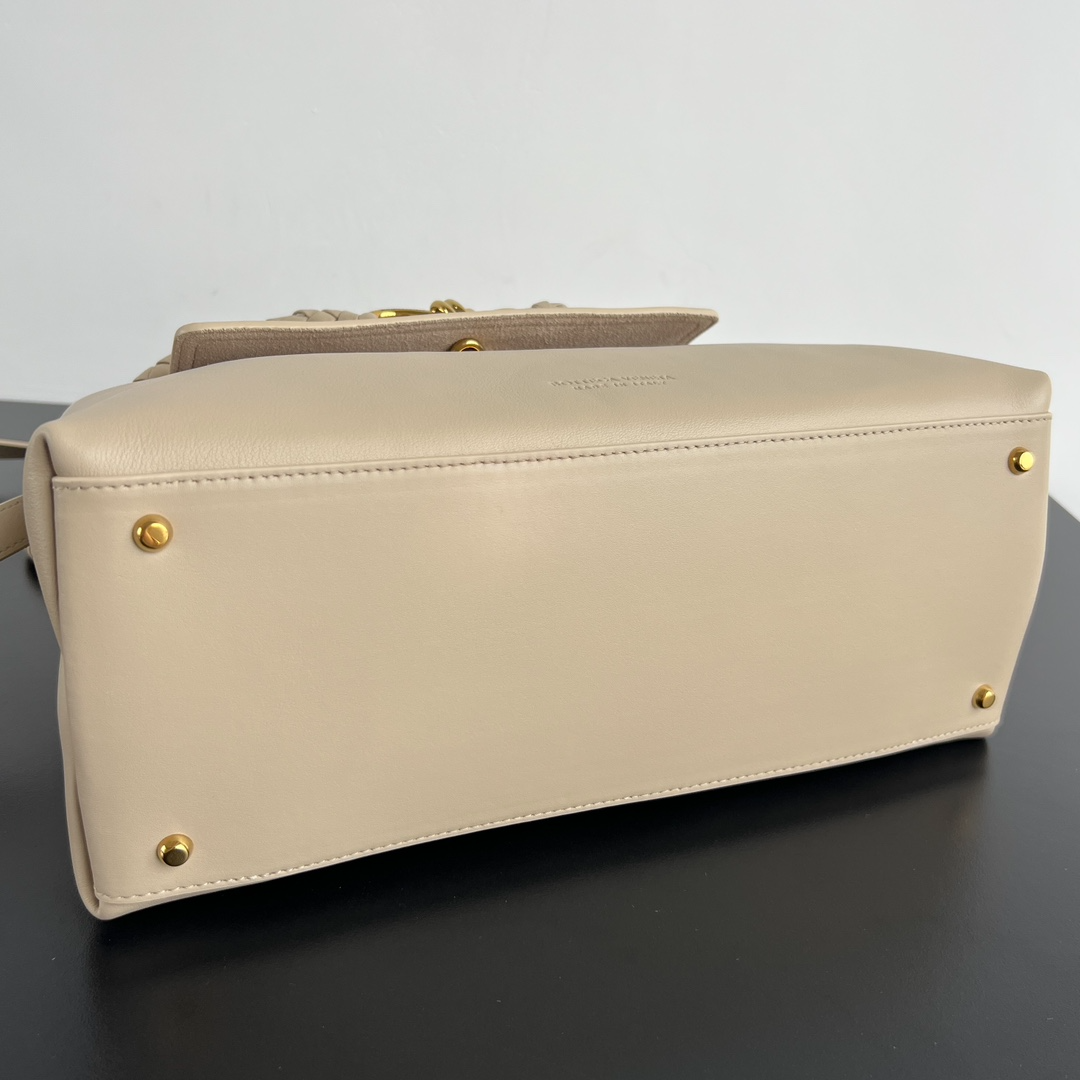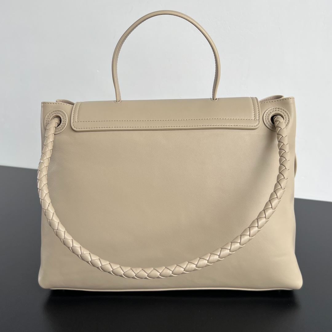 The Bv Ciao Ciao Handbag (Size: 34 x 26 x 15 cm) is a statement piece that embodies relaxed Italian elegance. The name "Ciao Ciao" represents both a greeting and a farewell, reflecting the laid-back yet refined lifestyle it evokes. Crafted from Dutch Silky Calf leather, this bag offers a silky-soft texture, enhanced by a soft suede lining for added comfort. The signature woven element shoulder straps and gold buckle decoration elevate its style, while the spacious interior ensures practicality. Whether attending formal events or casual outings, the Ciao Ciao handbag promises to complement your style with a touch of casual sophistication.