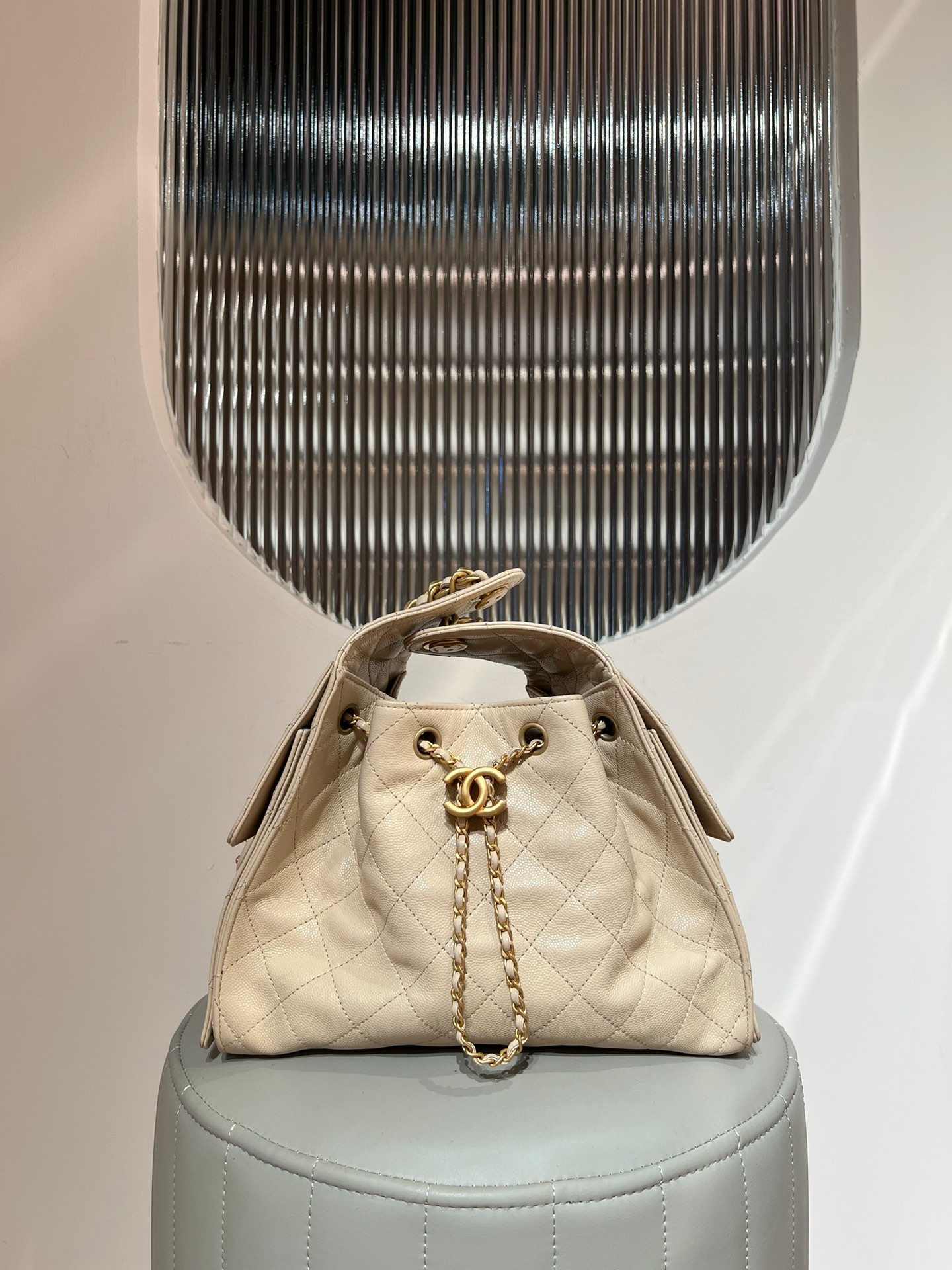 Chanel Beige Apricot Small Bucket Bag