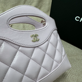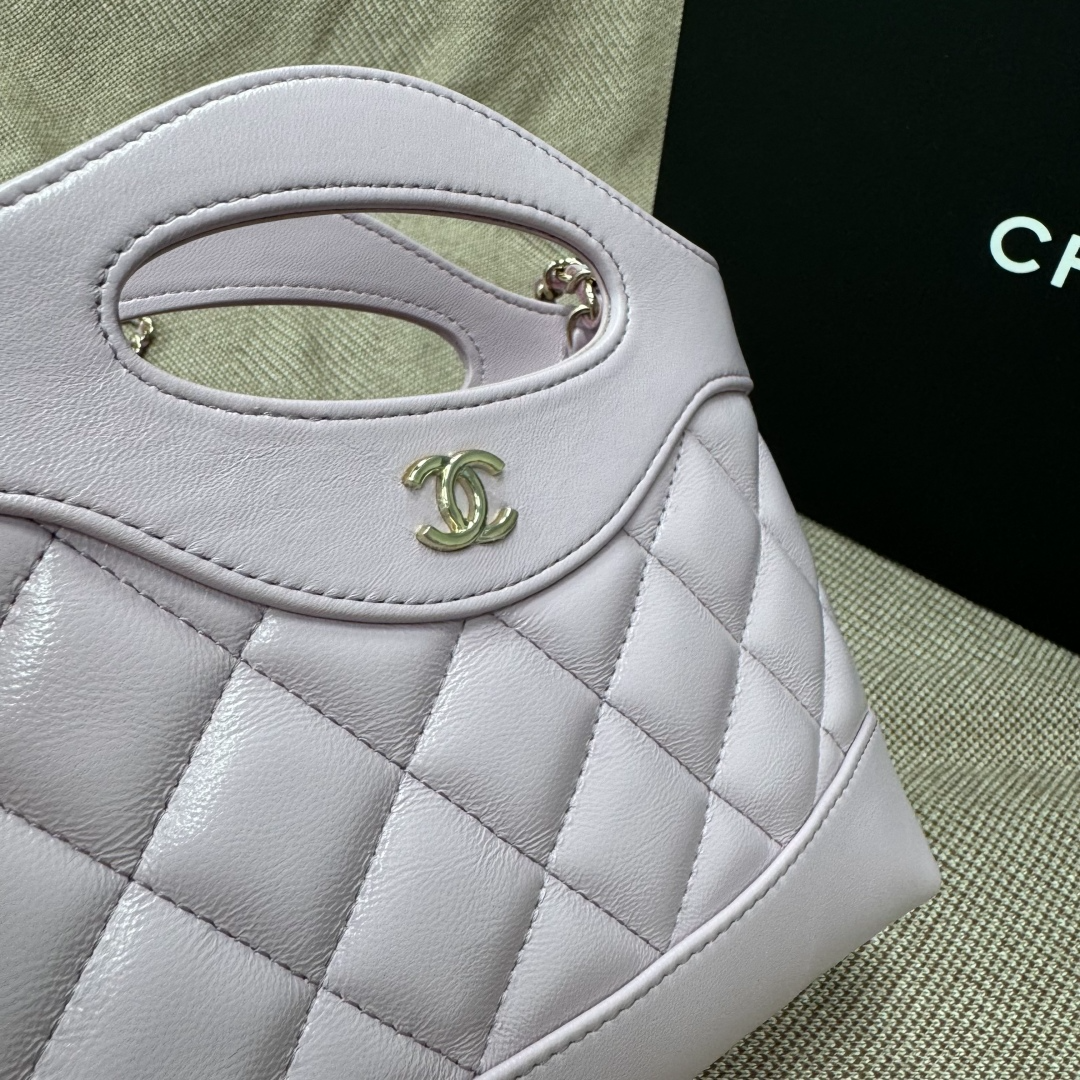 The Chan Nano 31 Bag in a beautiful pink-purple oil wax sheepskin leather is a stunning accessory that combines luxury with practicality. With its soft, lustrous finish, the bag features the iconic quilted design and is accented with a light gold-tone buckle. At a compact 20cm size, it offers a chic and versatile option for carrying essentials, perfect for both casual and elegant occasions. The handle design adds a touch of modernity, making it a perfect addition to any fashion-forward collection.
